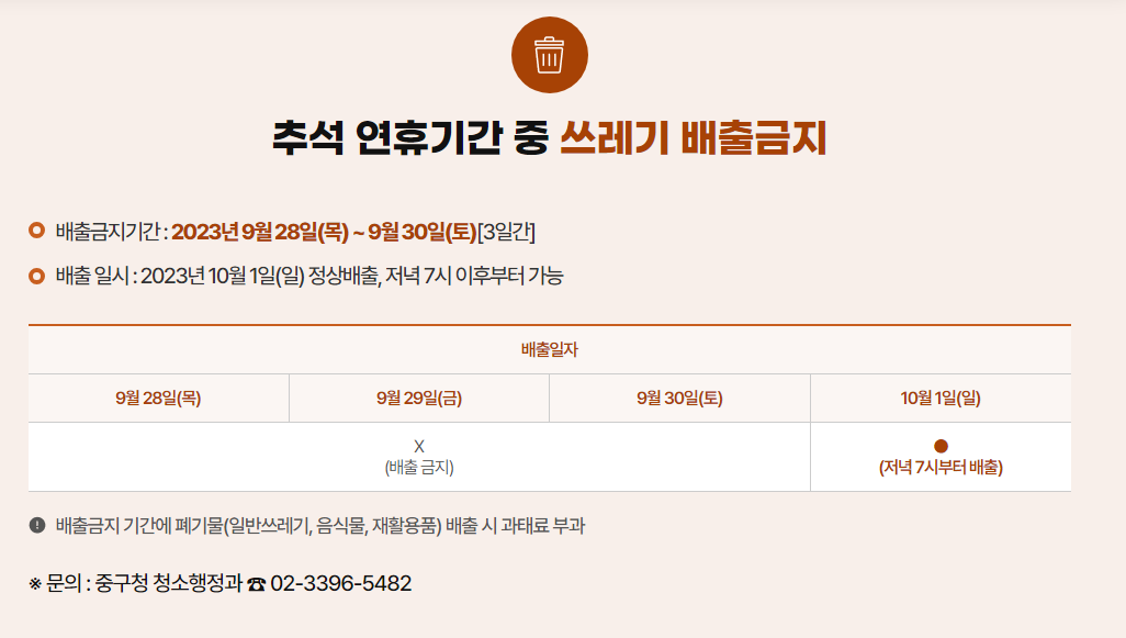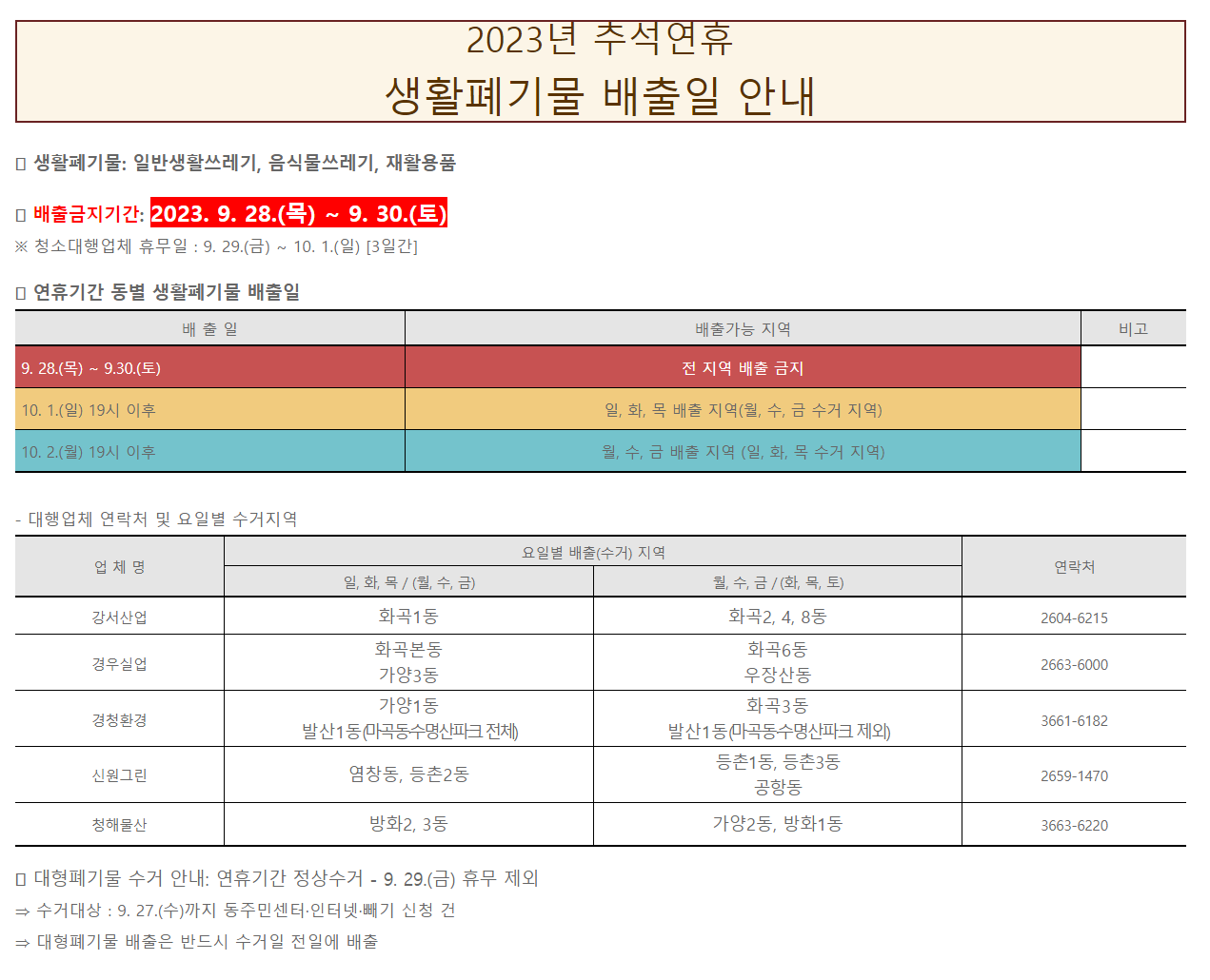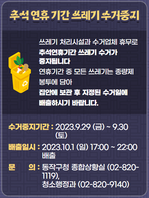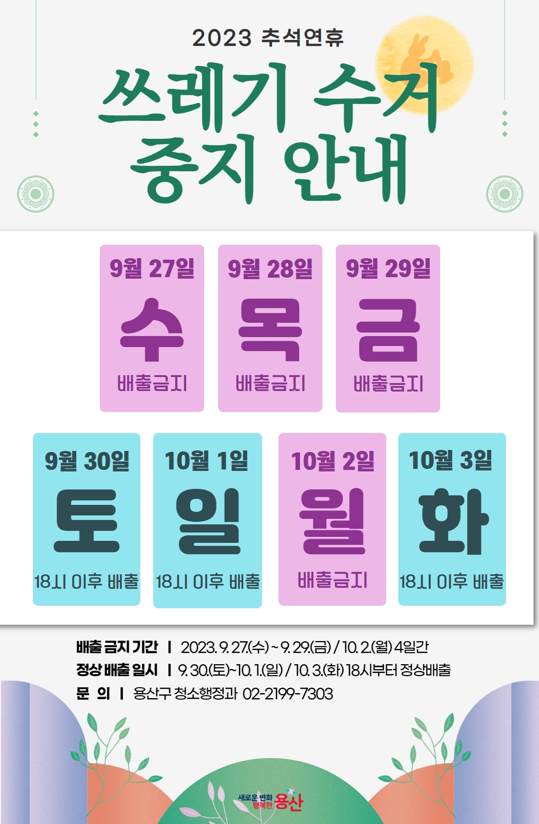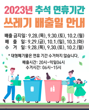 < 2023년 추석 연휴 기간 중 생활쓰레기 배출 안내 >
